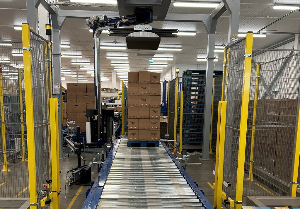 The “PERUZA” team admits that it was challenging to install the finished product palletization system in a facility that produced such a wide range of goods. In addition to being fully automated, the automatic palletizing system has a statistics and monitoring system that increases the productivity of electronic processes, increases production capacity, and lowers production waste. The manufacturing system automatically ensures that the mechanism for transporting the boxes has adequate space to divert them from the main conveyor in time using two effective robots. After that, one of nine exits—eight of which are automatic and one of which is manual—is where the boxes are delivered. The system determines which exit is the proper one based on the information provided by the barcode reader. These engineering solutions can process up to 16 boxes per minute and up to eight distinct items simultaneously.