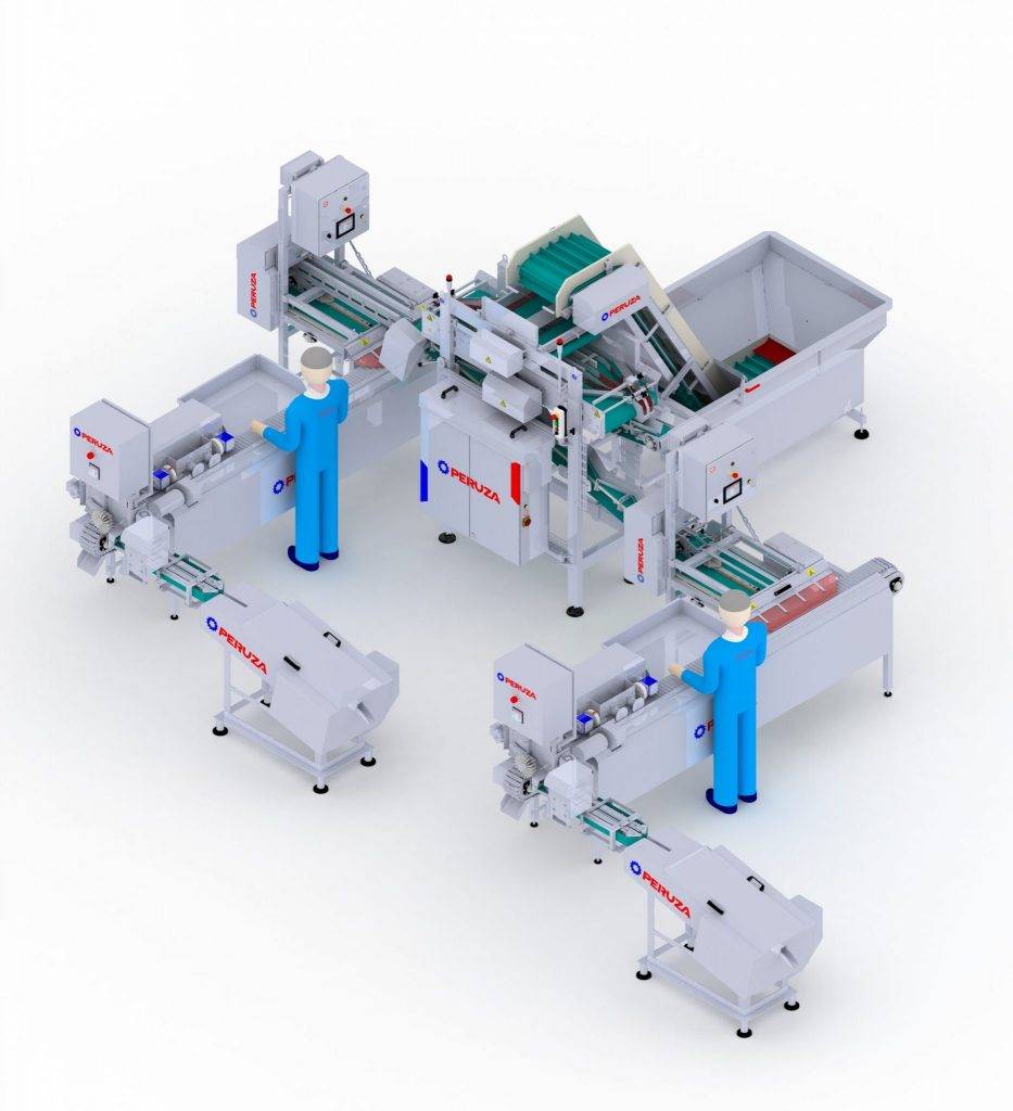 Pocket-type fish nobbing and filleting machine is offered to be combined with other modules. The most extensive system includes PERUZA Autofeeder, PERUZA nobbing machine, Vision System for Belly orientation and PERUZA filleting module.